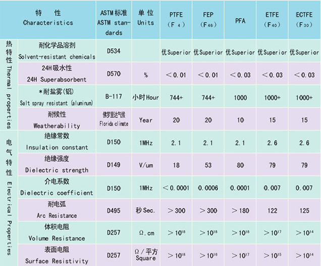 一、氟樹(shù)脂的物理性能數(shù)據(jù)